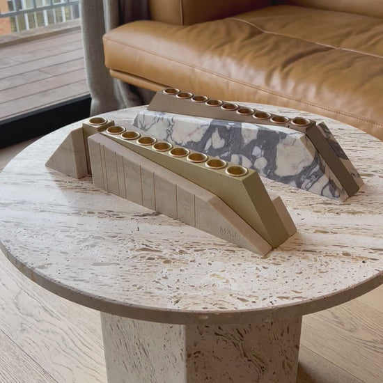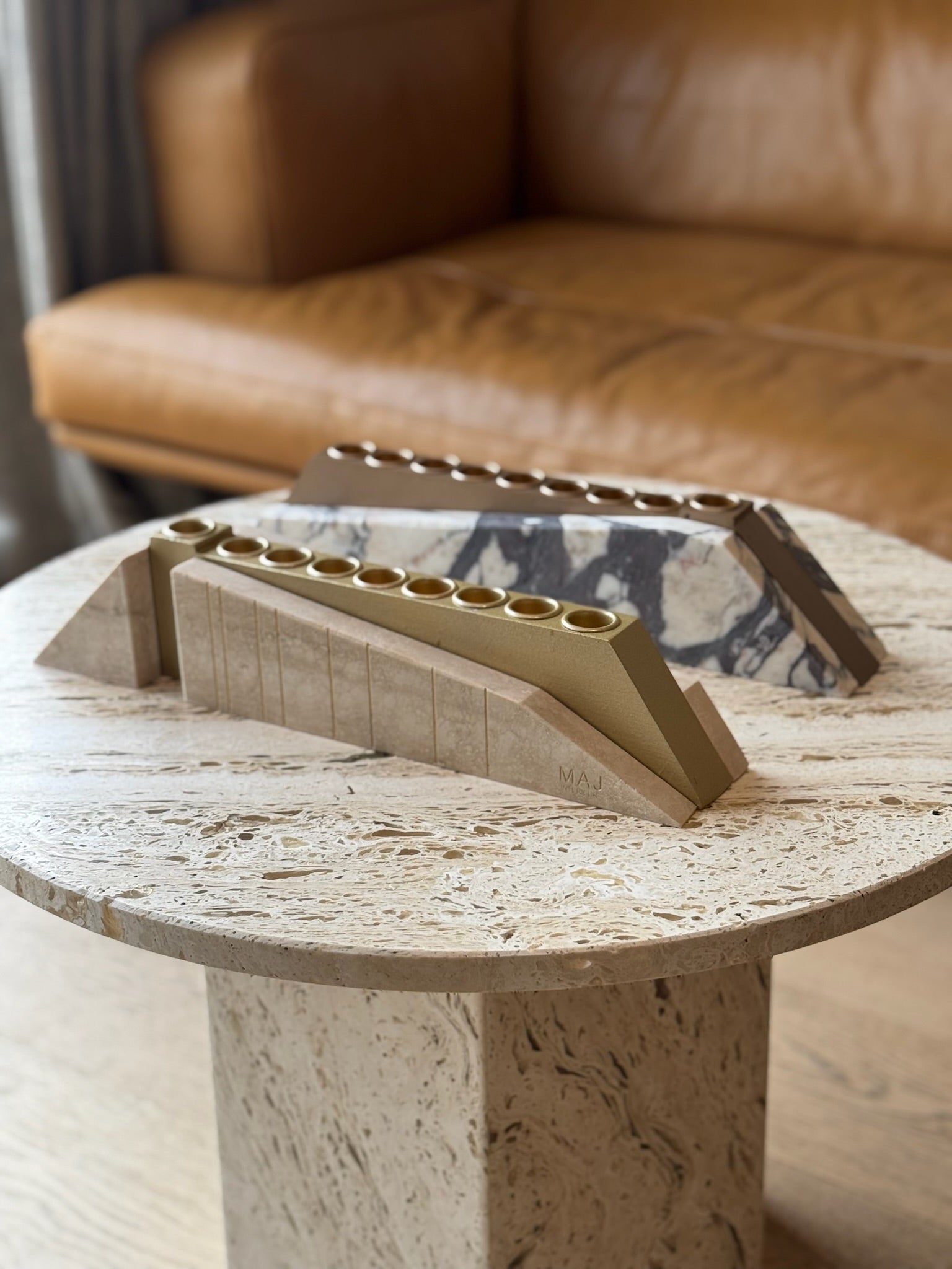 Nous sommes fiers de vous présenter la Hanoukkia de l'année 2025, une pièce emblématique de notre collection MAJ Intérieur.